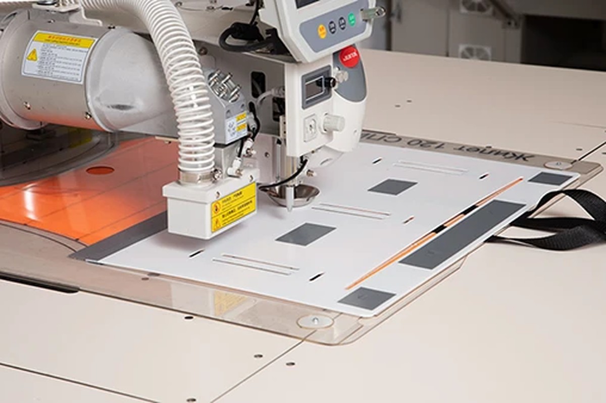 Чтобы обеспечить высокий темп работы раскройного комплекса, мы дооснастили его автоматической настилочной машиной и многосекционным настилочным столом с поддувом.
